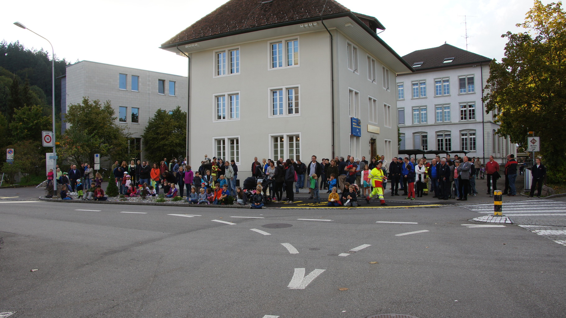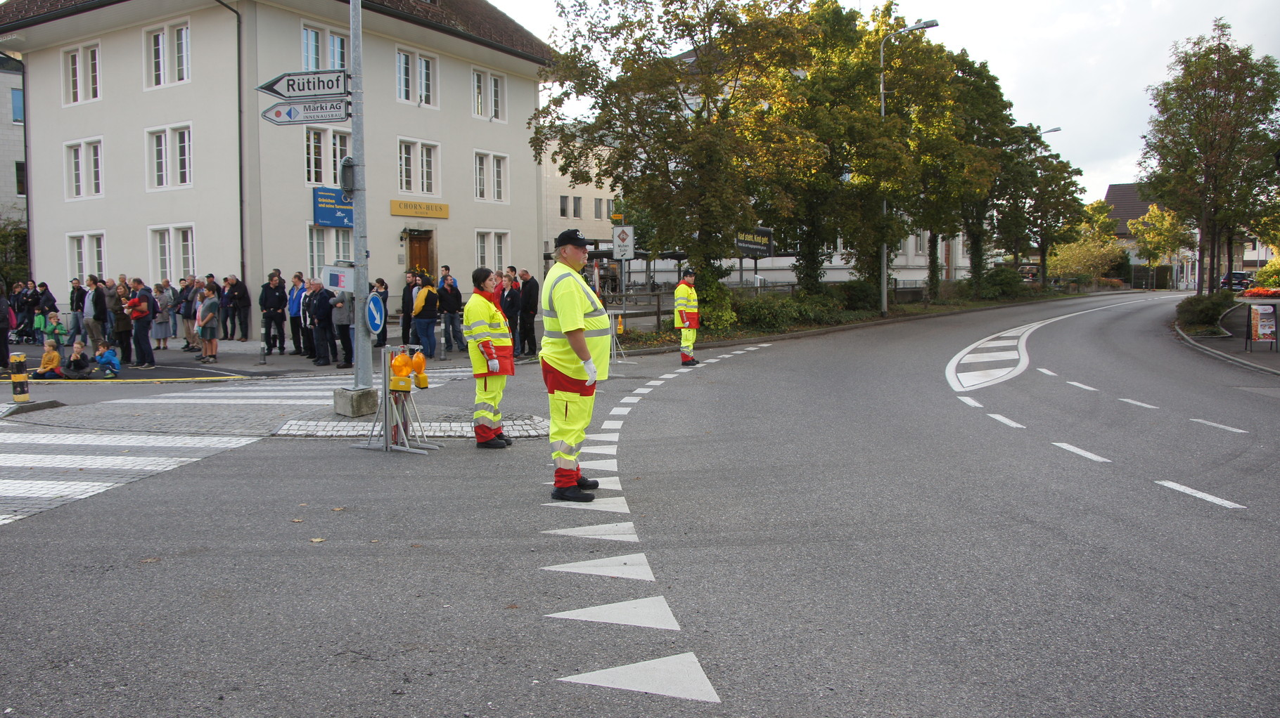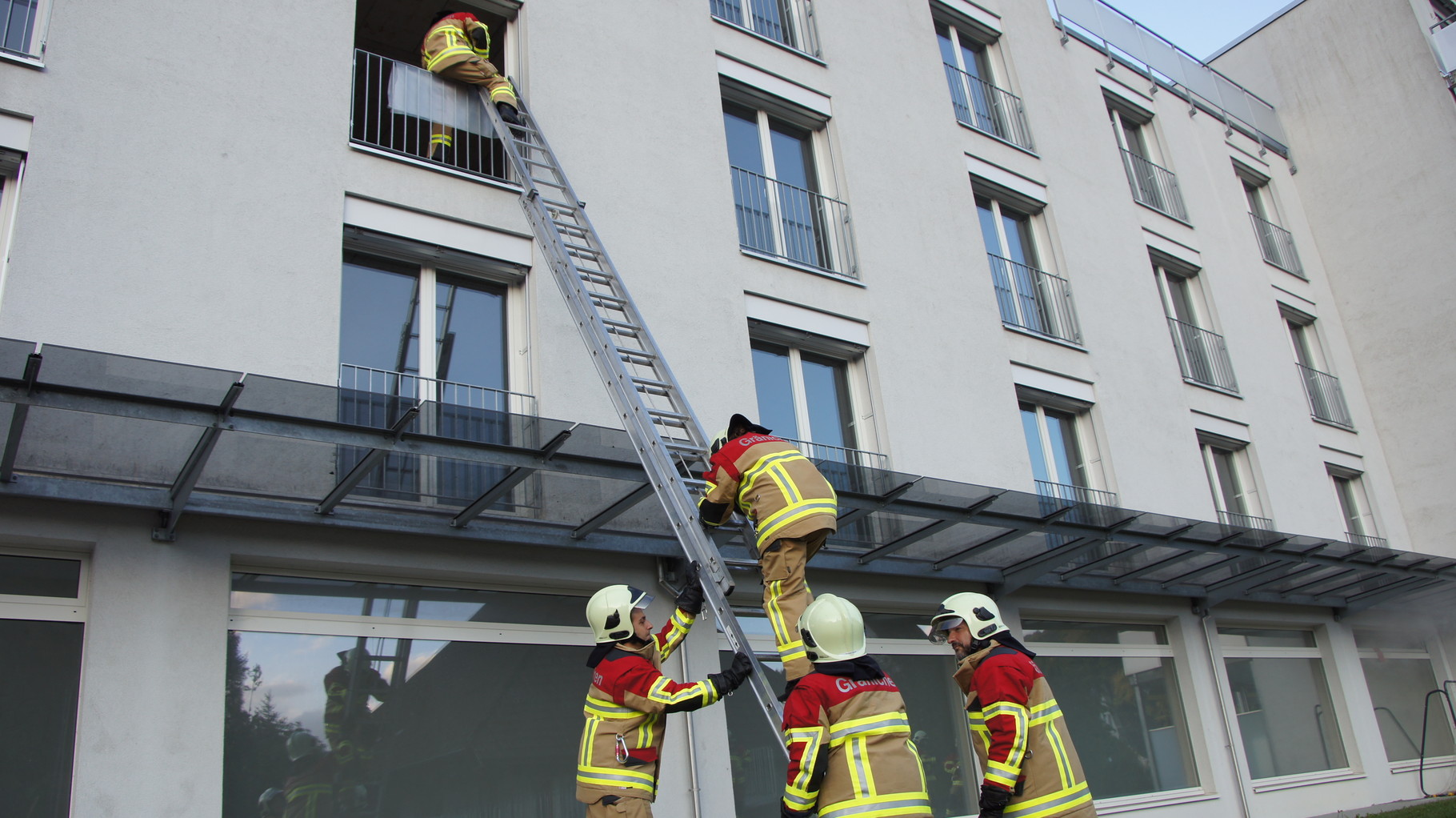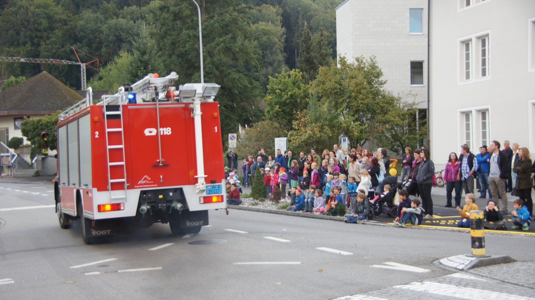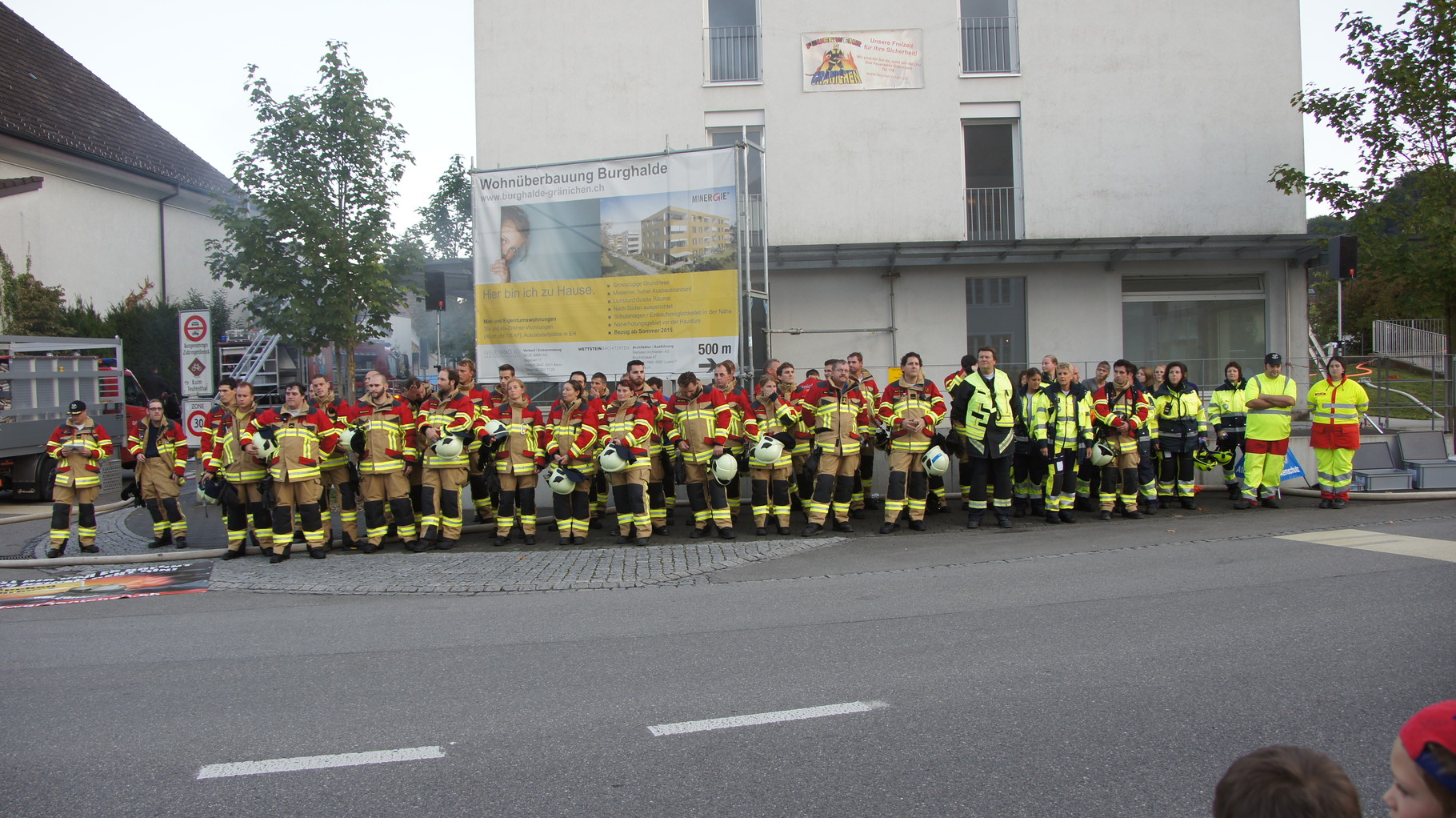 Sofort rückten die Einsatzkräfte mit Blaulicht und Horn zum Schadenplatz aus, wo sie vom interessierten Publikum empfangen wurden. Der Einsatzleiter befahl die ersten Rettungen im zweiten und