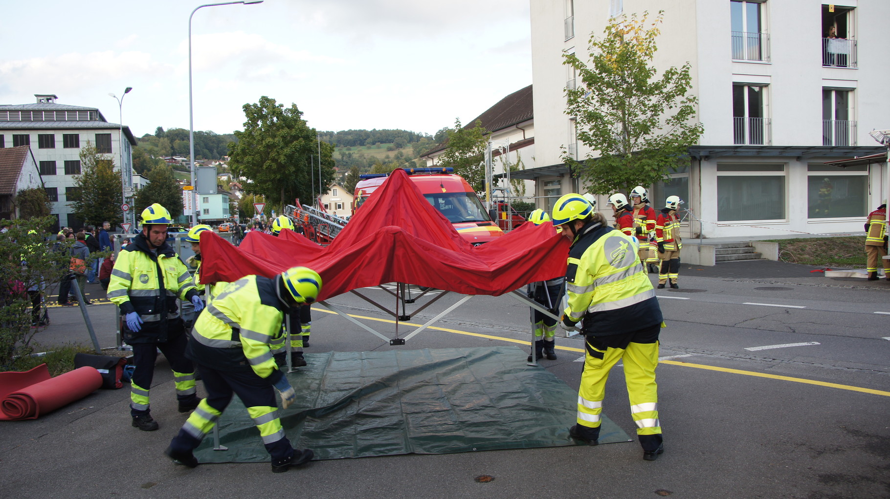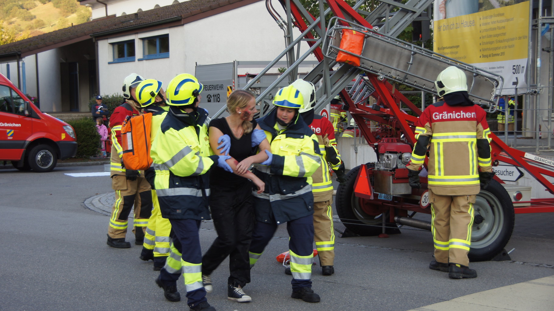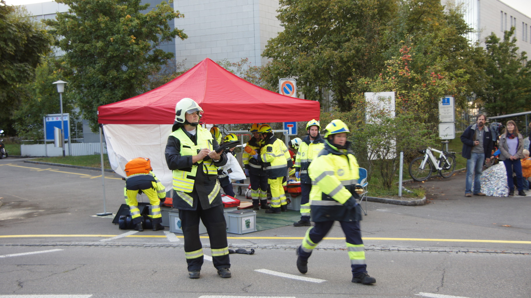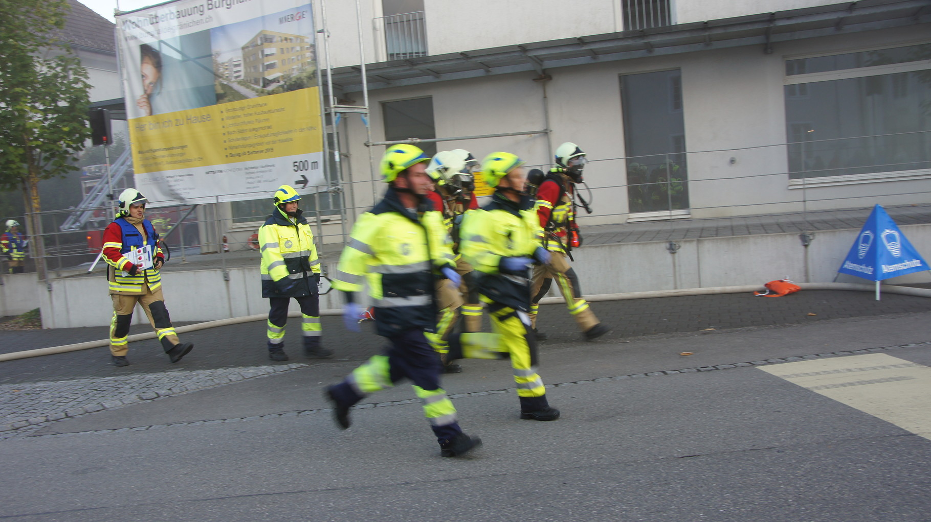 ein Überdrucklüfter kam zum Einsatz, der den Rauch aus den Räumen ins freie beförderte. Die Sanitätsgruppe richtete ein Verwundeten Nest ein, denn die Arbeit liess nicht lange auf sich warten.
