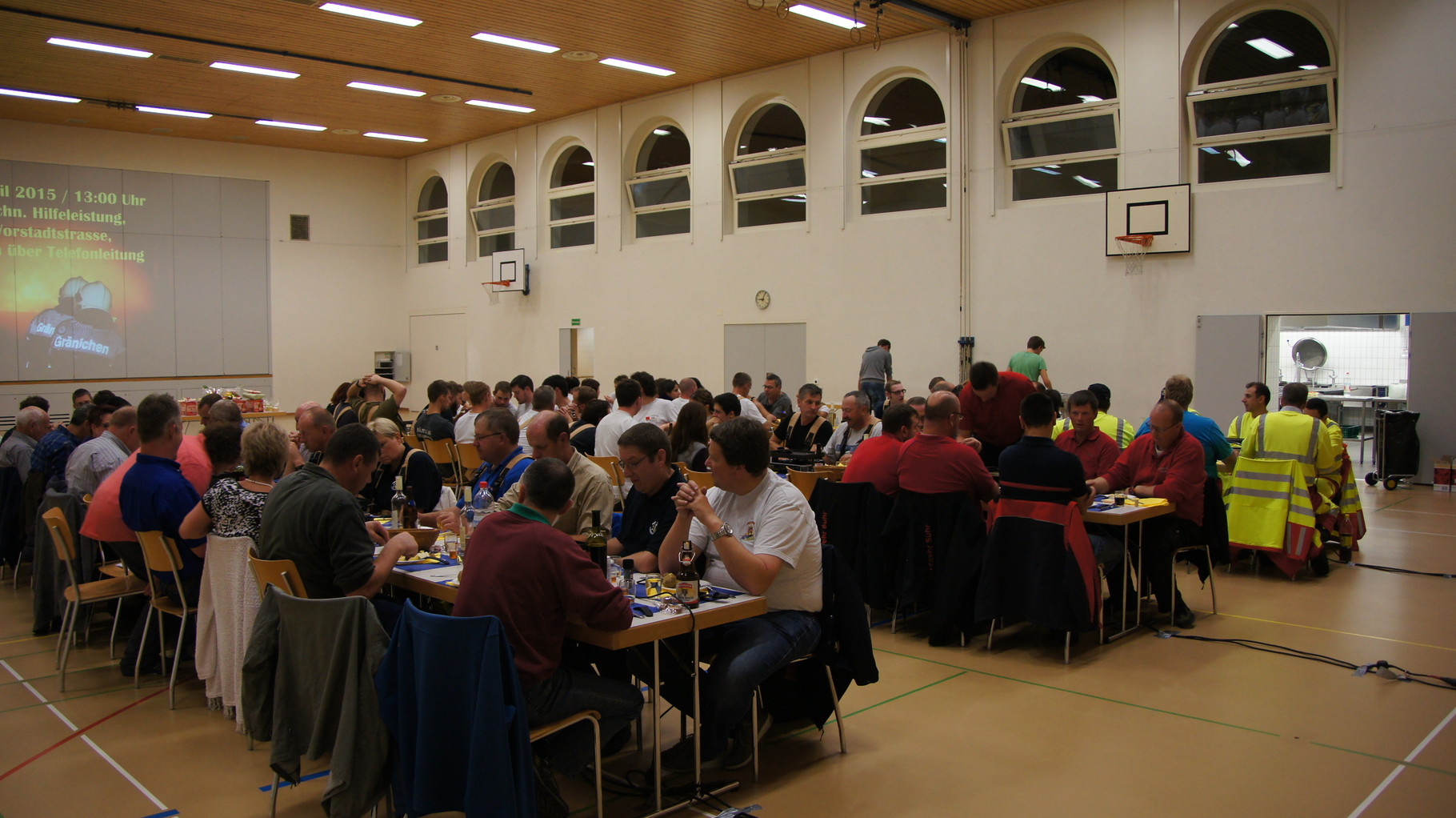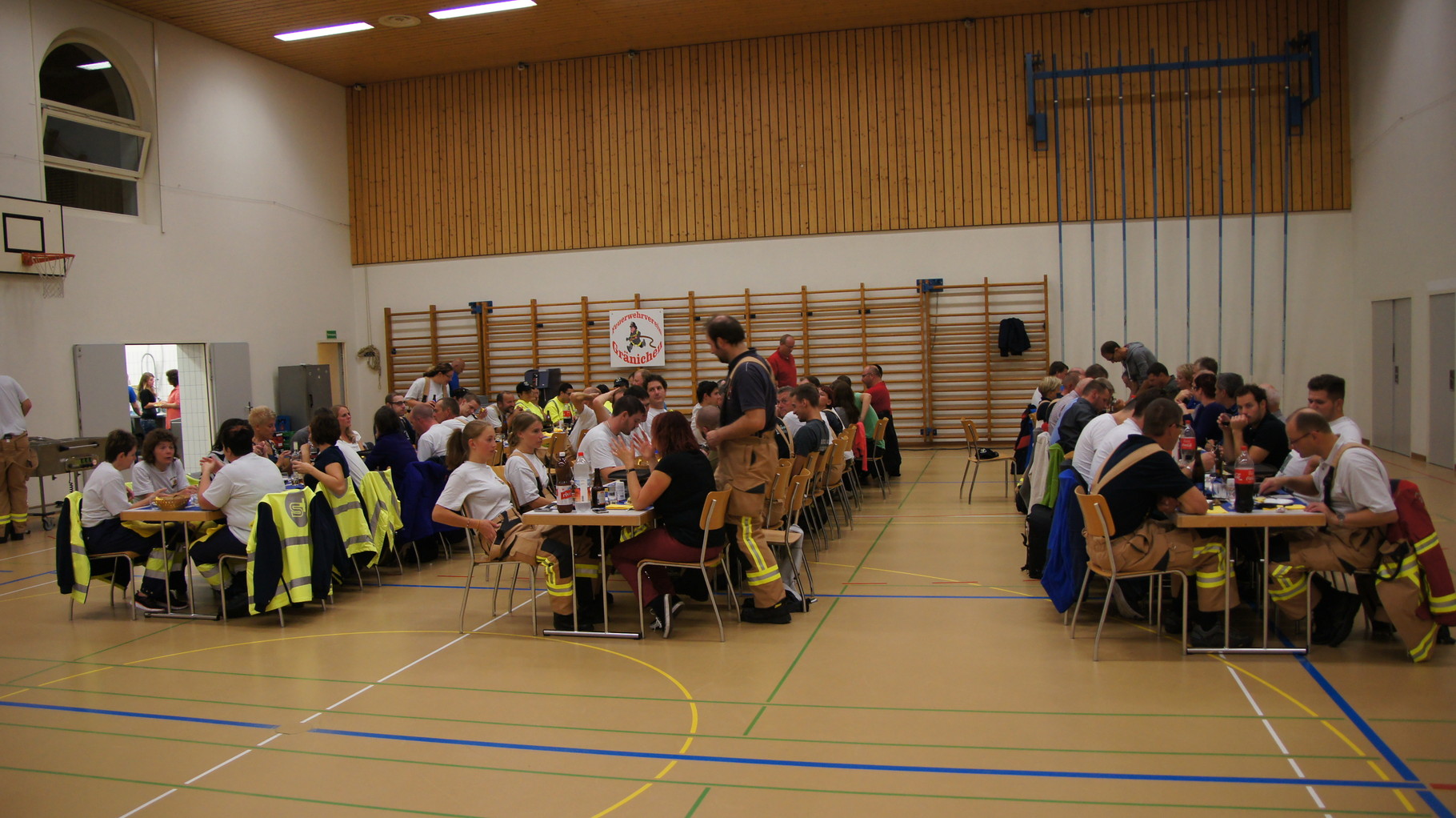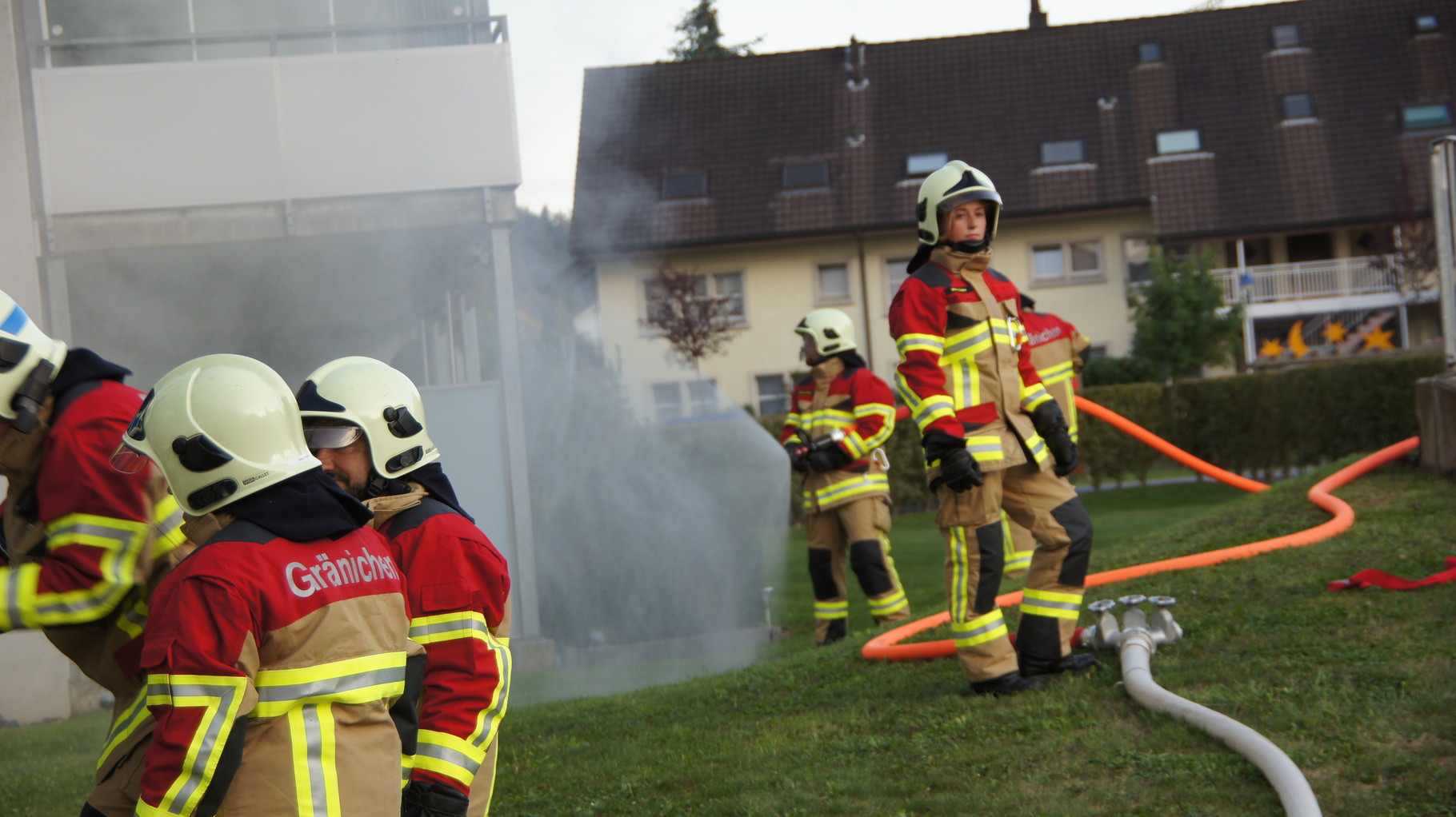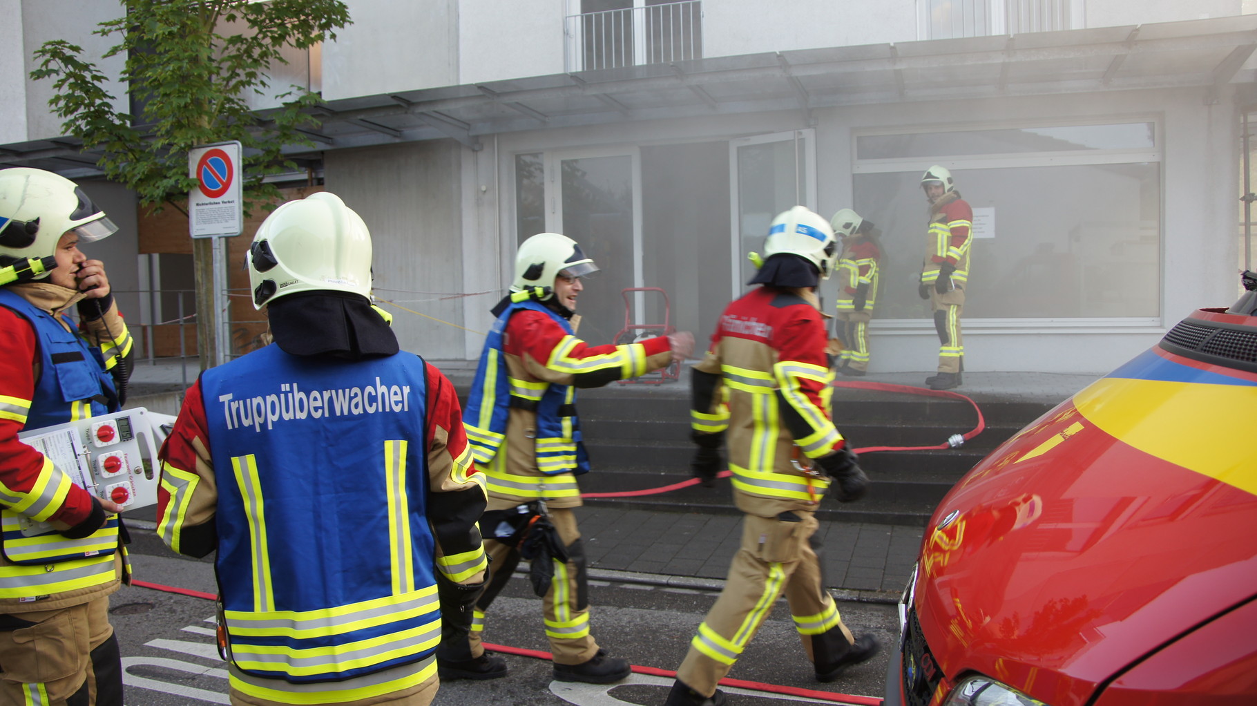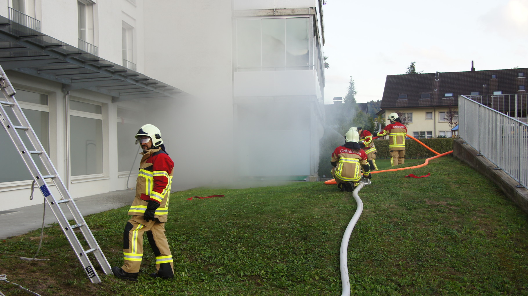 ein Überdrucklüfter kam zum Einsatz, der den Rauch aus den Räumen ins freie beförderte. Die Sanitätsgruppe richtete ein Verwundeten Nest ein, denn die Arbeit liess nicht lange auf sich warten.