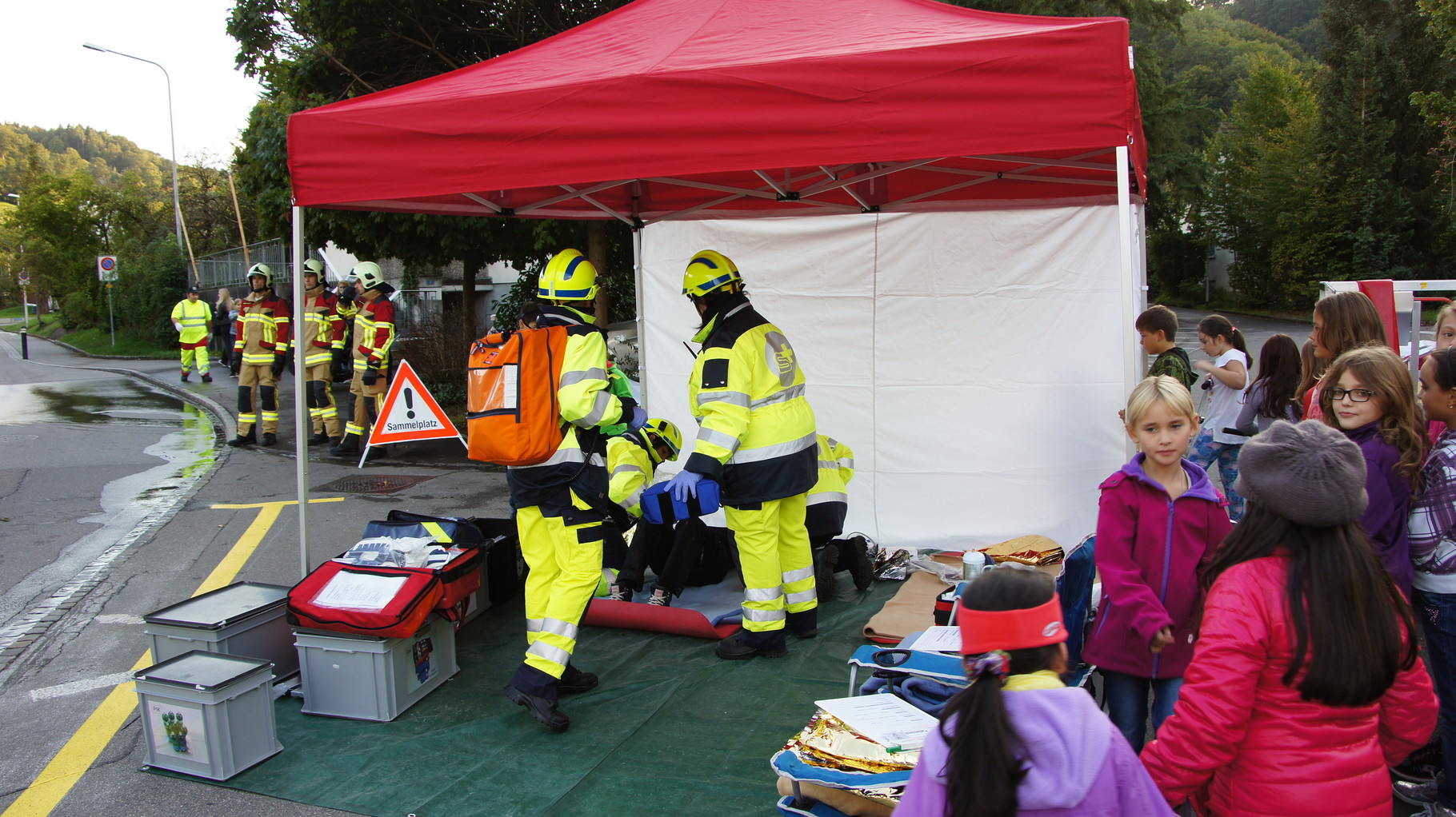 Neue Brandschutzkleider und eine Einsatzübung mit mehreren vermissten Personen rundeten die Präsentation der Feuerwehr ab.