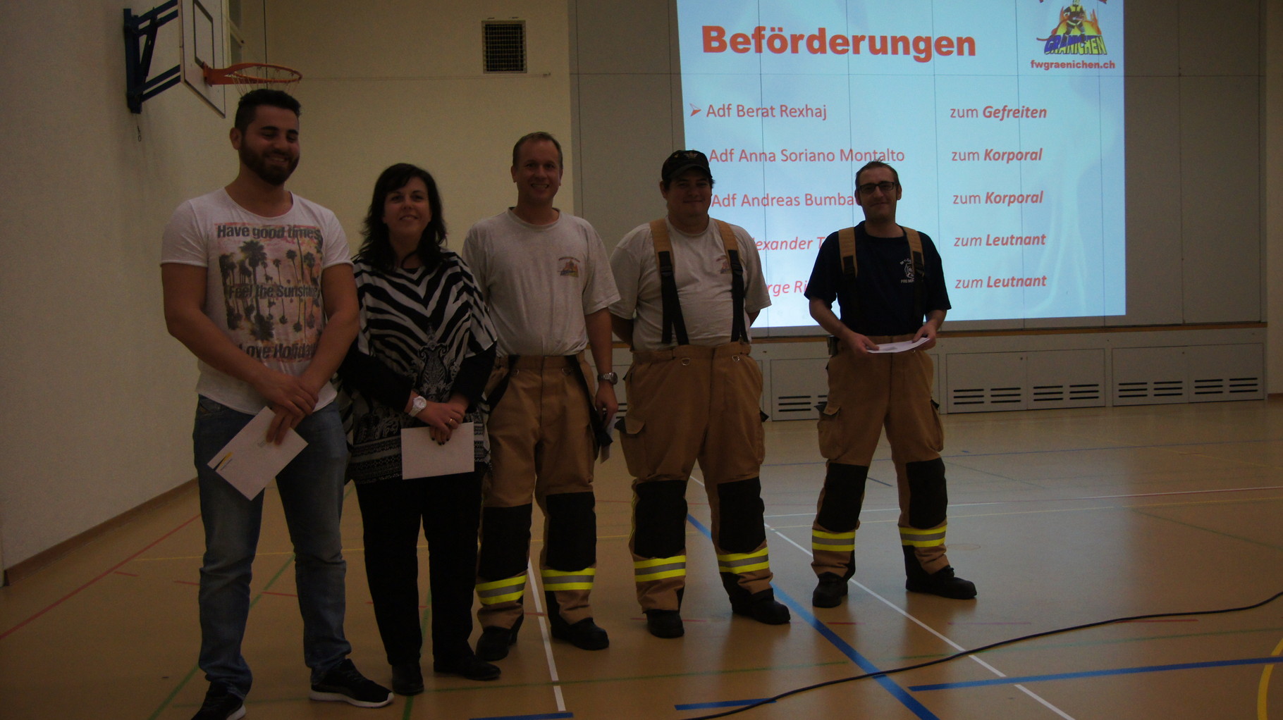 Der Feuerwehrkommandant Thomas Wiederkehr konnte folgende Beförderungen vornehmen: