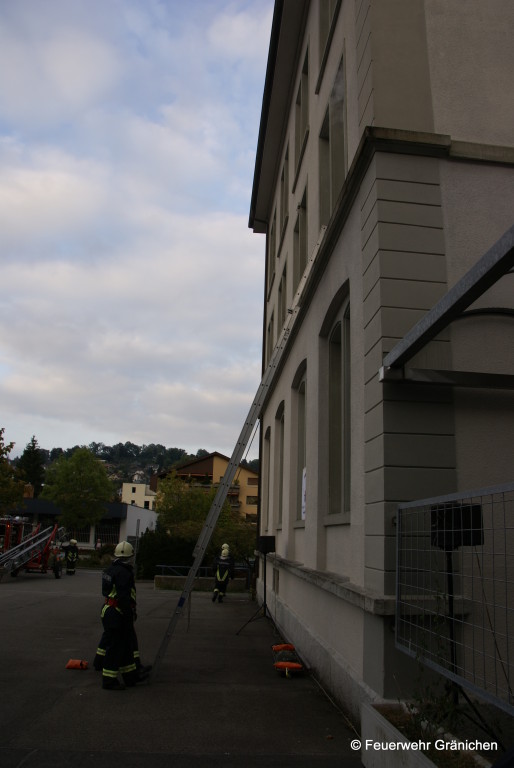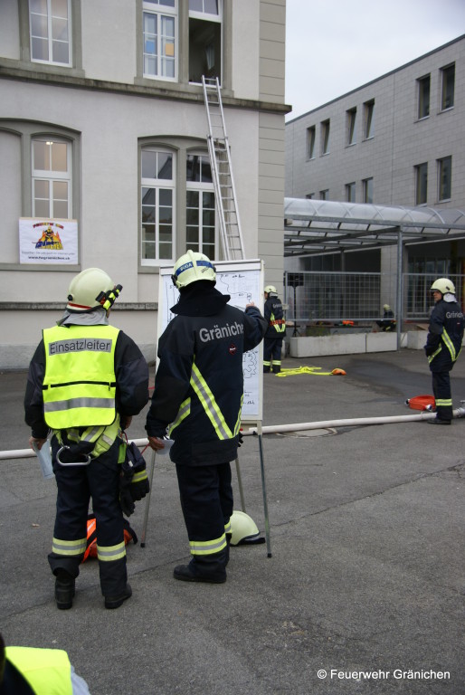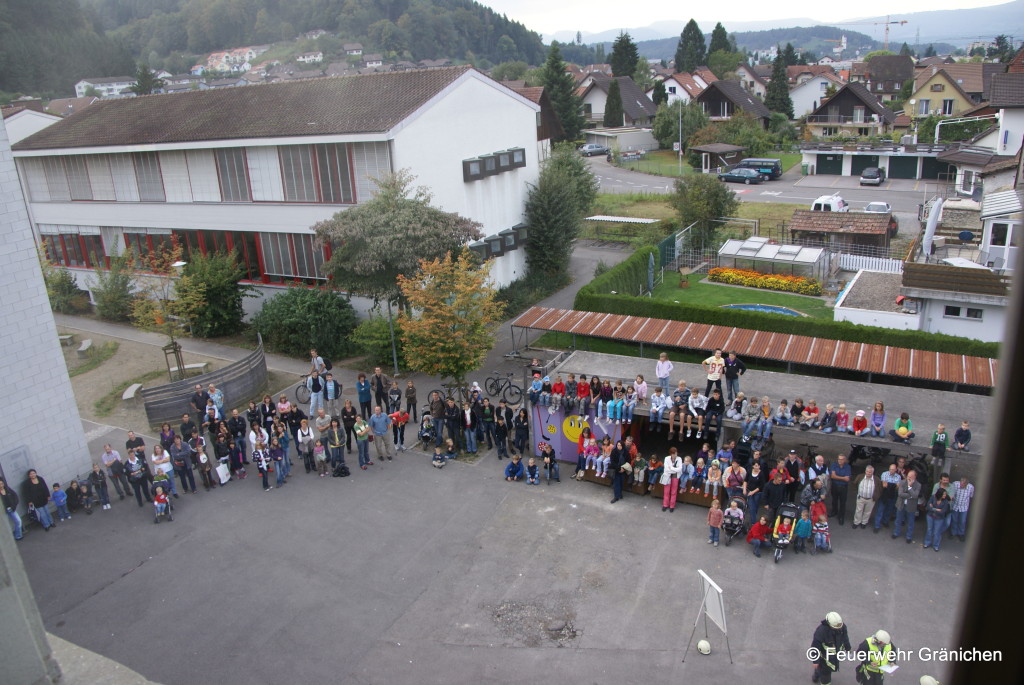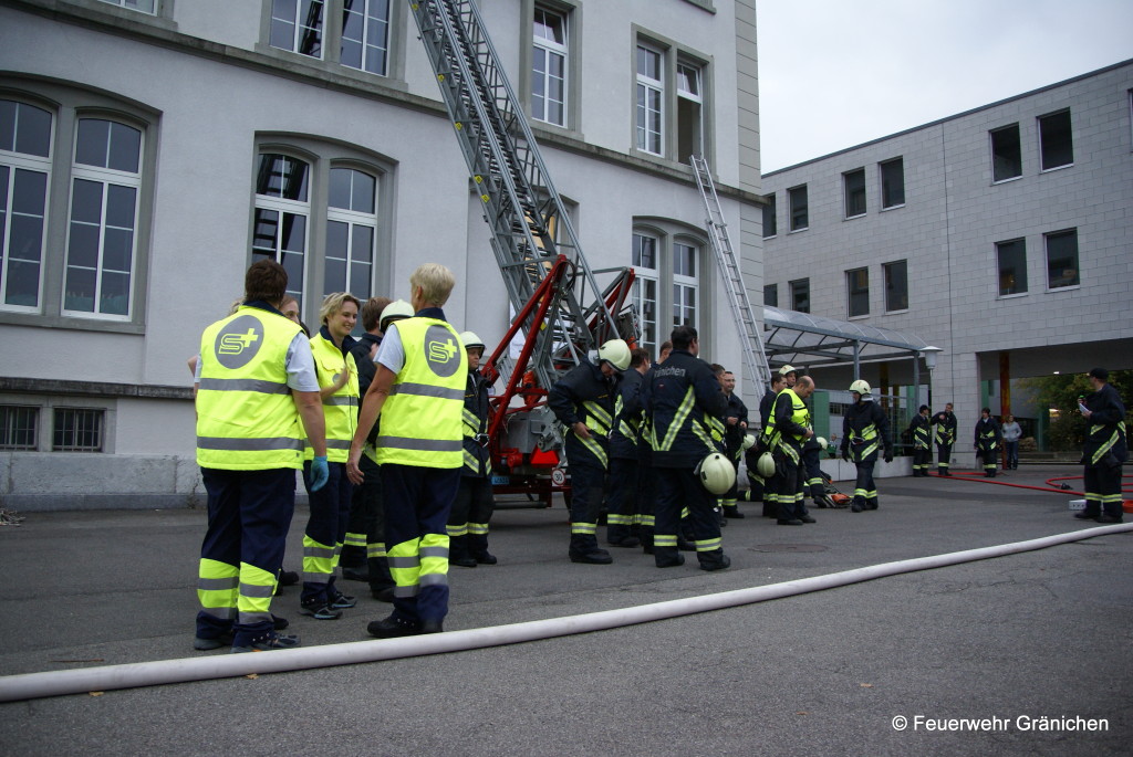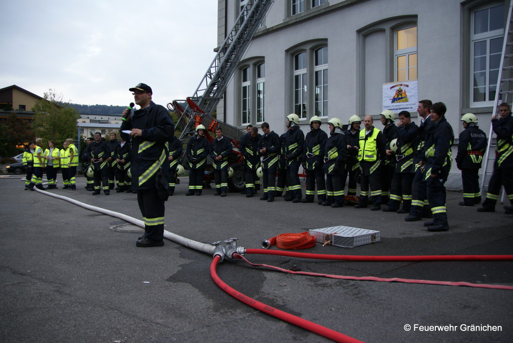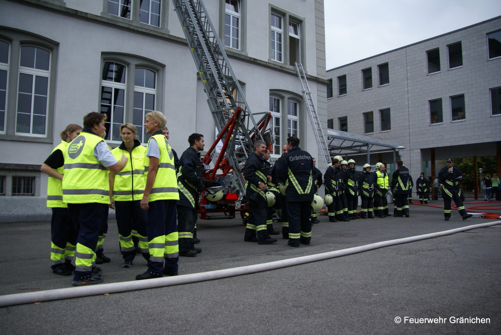 Brand Gross, Mitteldorfstrasse 14, Dorfschulhaus, mehrere Personen müssen gerettet werden. So hiess die Alarmmeldung die den Startschuss zur diesjährigen Hauptübung gab.
