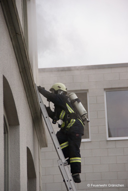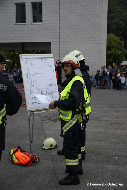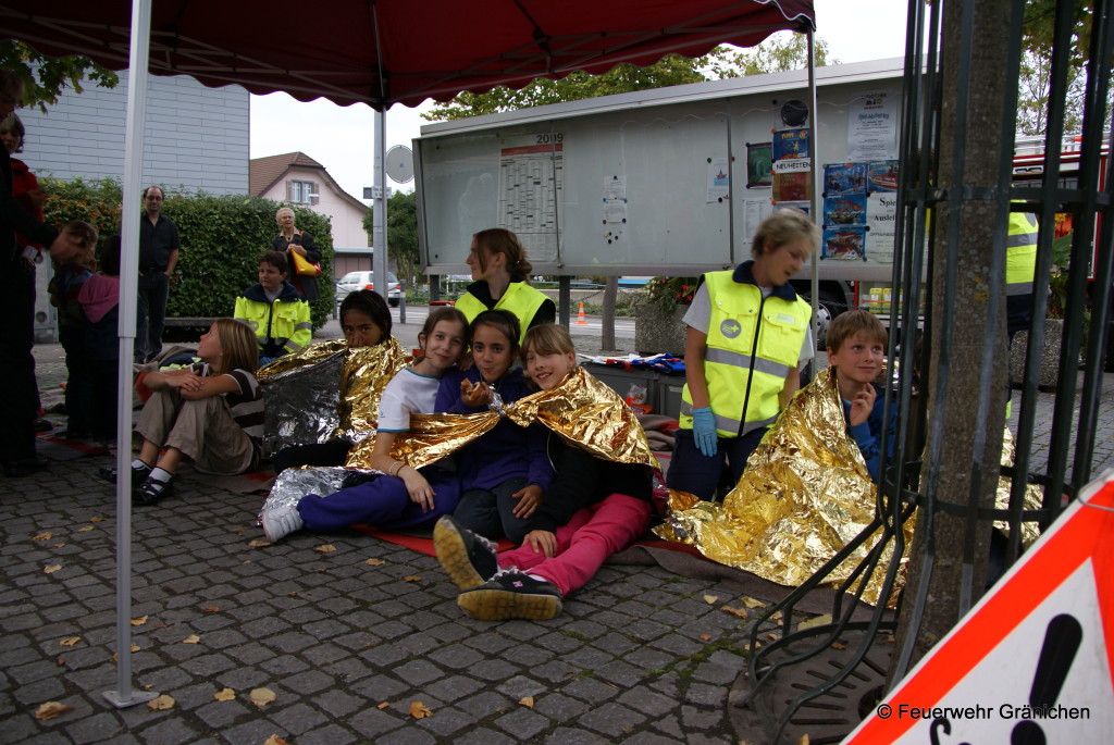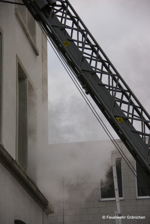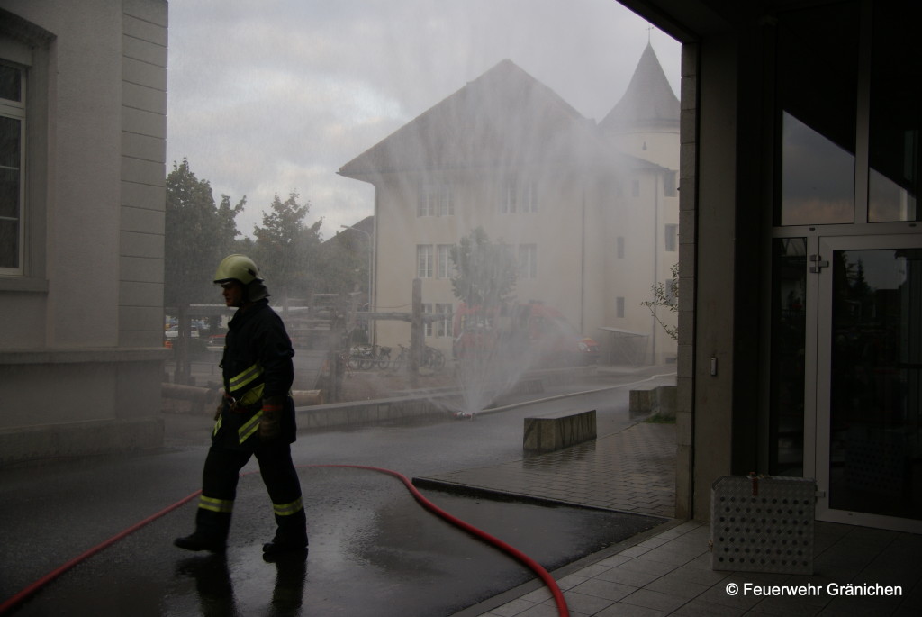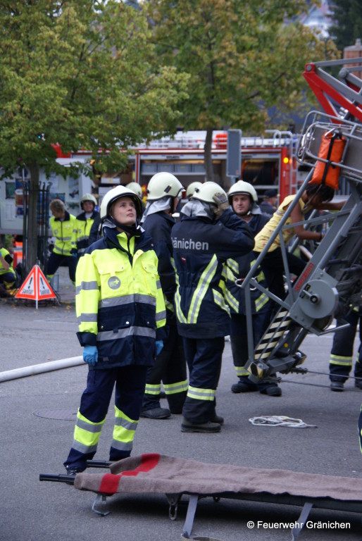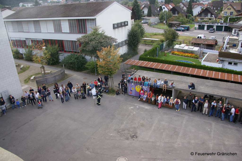 Brand Gross, Mitteldorfstrasse 14, Dorfschulhaus, mehrere Personen müssen gerettet werden. So hiess die Alarmmeldung die den Startschuss zur diesjährigen Hauptübung gab.