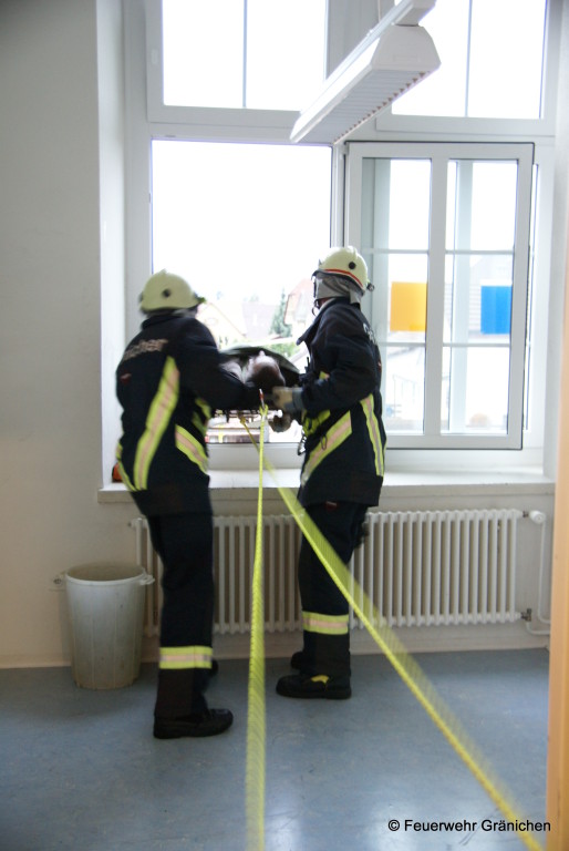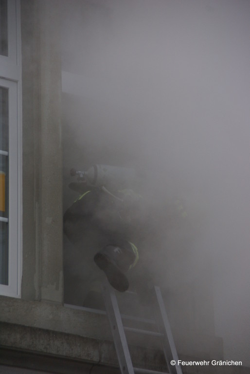 Rettungen von einer Schulklasse aus dem 3.Obergeschoss und Rettungen unter Atemschutz sowie eine Brandbekämpfung aus dem 2.Obergeschoss.